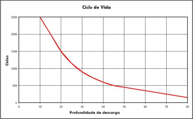 O número de ciclos da bateria está ligada com a profundidade de descarga (DoD). Fabricantes recomendam que seja utilizado uma profundidade de descarga entre 20 e 30%, garantindo assim maior número de ciclagens, melhor performance e maior vida útil. Em resumo, quanto maior o DoD, menor número de ciclos a bateria irá aguentar.